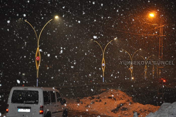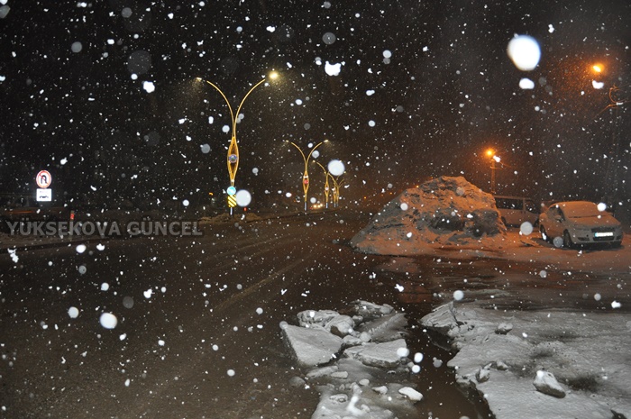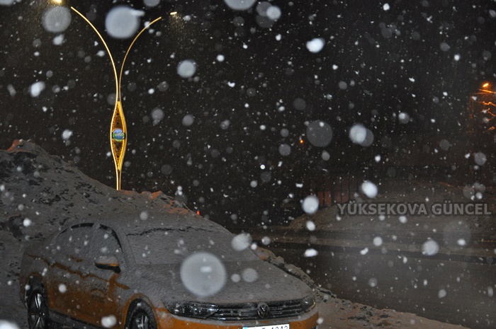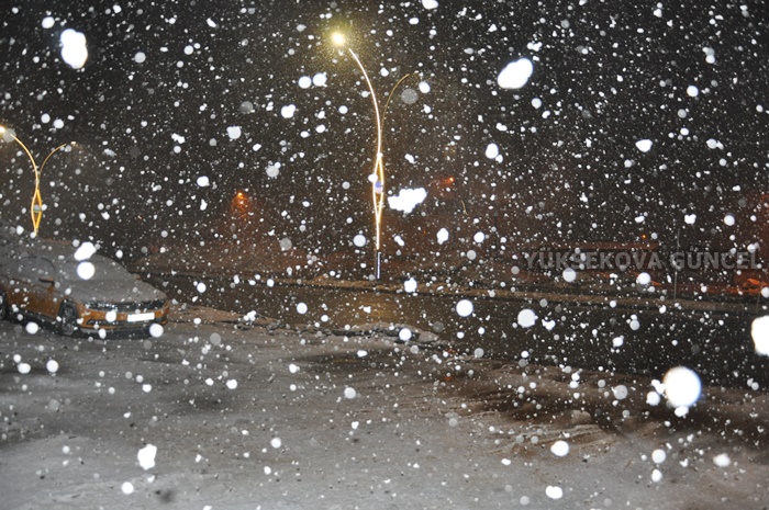 Yüksekova ilçesinde vatandaşlar akşam saatlerinde lapa lapa yağan kar sürpriziyle karşılaştı.
