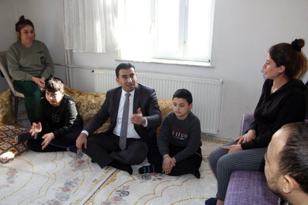 Yüksekova Milli Eğitim Müdürü Yusuf Atael ve Yüksekova Milli Eğitim Şube Müdürü İskender Akdoğan'la beraber ilçenin farklı mahallelerine yerleşen aileleri evlerinde ziyaret ettiler.
