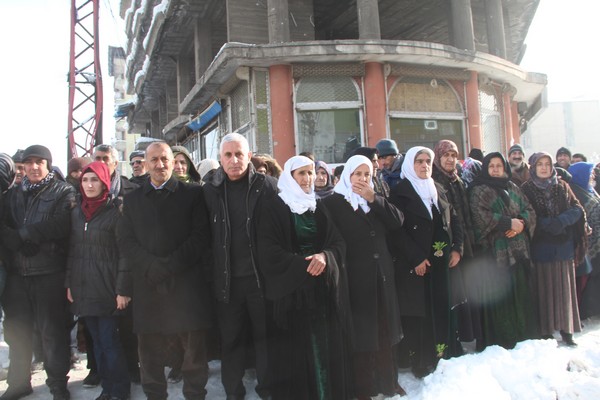 Eskicazevi kavşağında bir araya gelen Yüksekova Belediyesi, HDP, DBP, KJA, Barış Anneleri, KESK-DİSK, MEYA-DER, KURDI-DER ve STK yönetici ve temsilcileri adına ortak açıklamada bulunan Gever Halk Meclisi Eşbaşkanı Şerafetin Dede, Kürt halkının AKP Hükümeti tarafından katliamlardan geçirildiğini kaydetti.