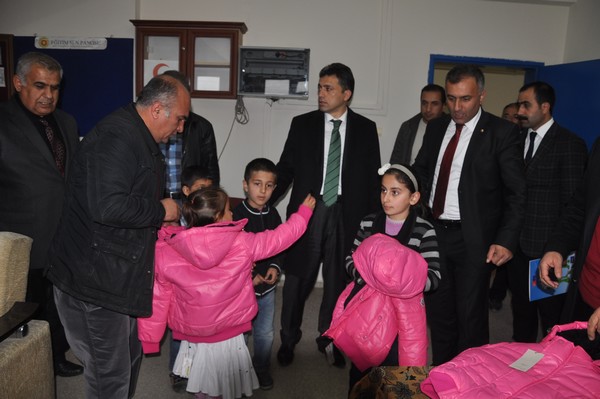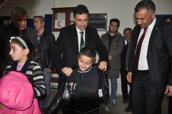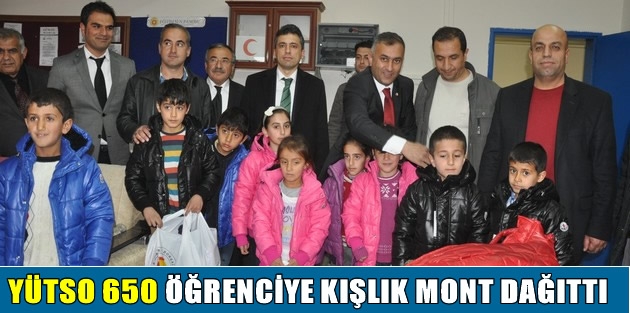 Yüksekova ilçe Kaymakamı İbrahim Çenet, YÜTSO başkanı Salih Özdemir ve YÜTSO yöneticileri 16 okulda 650 öğrenciye kışlık mont dağıttı.