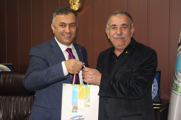 Başkan Özdemir kendilerini ziyaret eden heyete Şemdinli Balı ve Yüksekova tereyağı hediye etti.