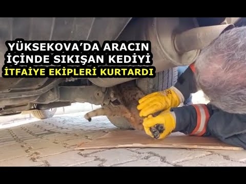 Hakkari'nin Yüksekova ilçesinde bir aracın alt kısmında sıkışan kedi, itfaiye ekiplerinin uzun uğraşları sonucu kurtarıldı.