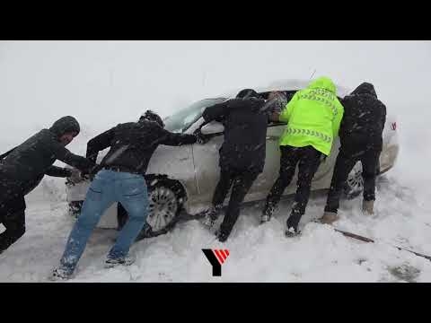 Hakkari'nin Yüksekova ilçesinde sabah yoğun şekilde bastıran kar yağışı hayatı durma noktasına getirirken, buz tutan yolda 8 araç zincirleme kaza yaptı.