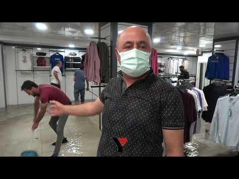 Yüksekova ilçesinde aniden bastıran sağanak yağış sonucu bazı 'Koton Giyim' Mağazası adlı iş yerine su bastı.