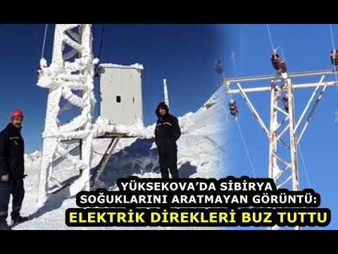 Yüksekova'da Sibirya soğuklarını aratmayan görüntü: Elektrik direkleri buz tuttu