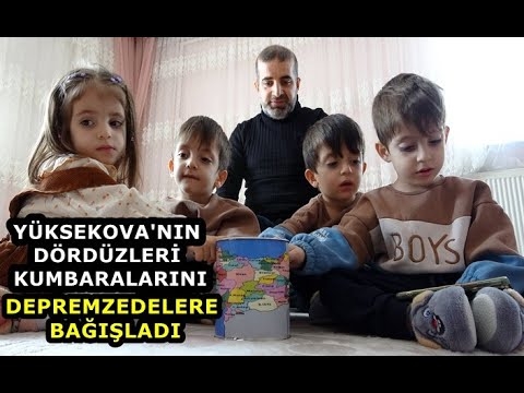 Hakkari'nin Yüksekova ilçesinde yaşayan dördüz kardeşler, anne ve babalarının vasıtasıyla kumbaralarında biriktirdikleri paralarını depremzedelere bağışladılar.