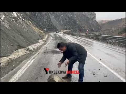 Hakkari’nin Yüksekova ilçesinde yoğun yağışlardan dolayı zeminin yumuşaması sonucu kara yoluna kaya düştü.