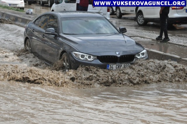 Yüksekova'da Aniden Bastıran Yağmur Caddeleri Gölete Çevirdi