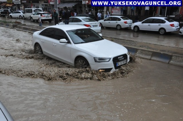 Yüksekova'da Aniden Bastıran Yağmur Caddeleri Gölete Çevirdi