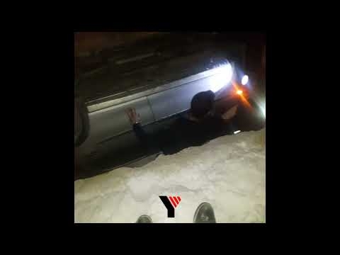 Hakkari’nin Yüksekova ilçesinde akşam saatlerinde buzlu yoldan kayan araç, su kanalına uçtu.