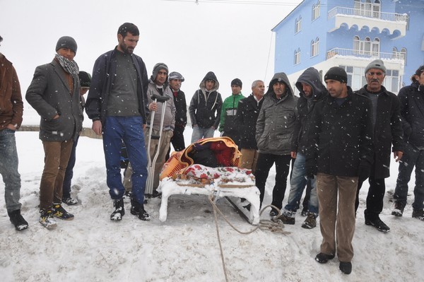 Yüksekova'da hasta kadın kızakla taşındı