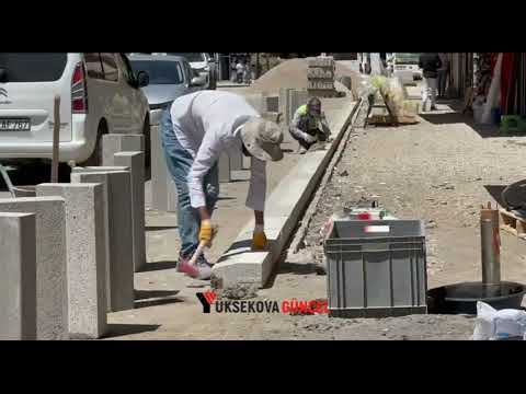 Yüksekova’da kaldırım yapım çalışmaları sürüyor