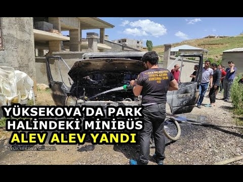 Yüksekova ilçesinde park halindeyken alev alan minibüs kullanılamaz hale geldi.