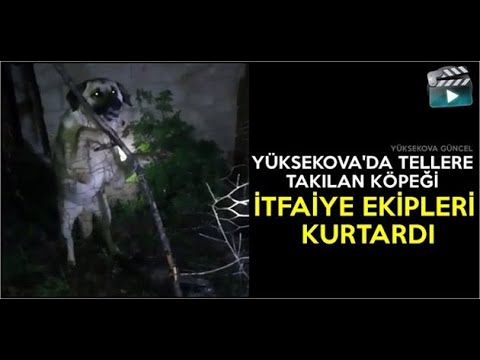 Hakkari’nin Yüksekova İlçesinde tellere takılan köpeği Yüksekova Belediyesine bağlı İtfaiye ekipleri kurtardı.