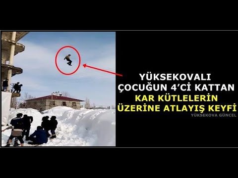 Yüksekovalı Çocuğun 4’ci Kattan Kar Kütlelerin Üzerine Atlayış Keyfi