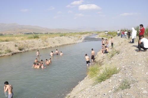 Yüksekovalı Gençler Dere Yatağında Serinliyor