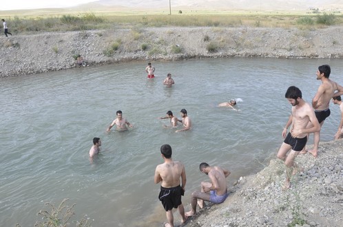 Yüksekovalı Gençler Dere Yatağında Serinliyor