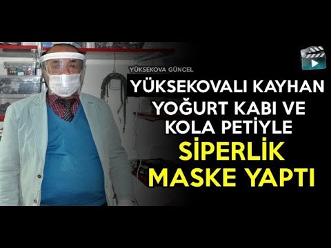 Hakkari'nin Yüksekova ilçesinde yaşayan Yunus Kayhan isimli vatandaş yoğurt kabı ve pet şişelerle siperlik maske yaptı.