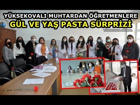 Yüksekova ilçesinin Çatma Köyü Muhtarı Metin Çakil, 8 Mart Dünya Kadınlar Günü nedeniyle ders başı yapan kadın öğretmenlere gül ve yaş pasta sürprizi yaptı.