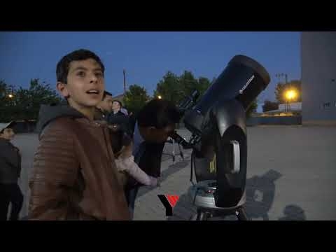 Hakkari'nin Yüksekova ilçesinin Şemsettin Onay Anadolu Lisesi'nin bahçesinde kurulan Teleskoplardan Yarım Ay içinde bulunan kraterleri görmek için sıraya girdiler.