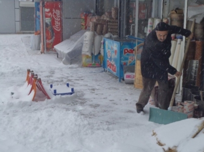 Esnafın da iş yerlerinin önünü temizlediği ilçede ektisini sürdüren kar yağışı nedeniyle hava sıcaklığında ise hissedilir derecede düşüş yaşandı.İha