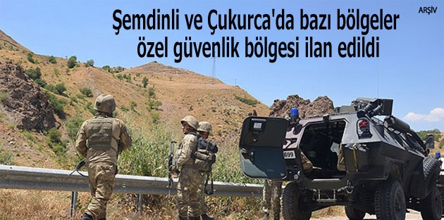 Hakkari Valiliği, Şemdinli ve Çukurca ilçelerinde bazı alanların özel güvenlik bölgesi ilan edildiğini duyurdu.